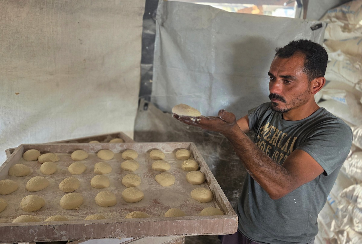 ח'ליל מנגב את הזיעה ממצחו בשרוול חולצתו ואומר: "אנחנו לשים את הבצק בידיים. אין חשמל ואין מכונות לישה. אנחנו עייפים… לפעמים כבר אין לנו כוח להמשיך, הבריאות נגמרת. מה אפשר לעשות? אנחנו רוצים לחיות."